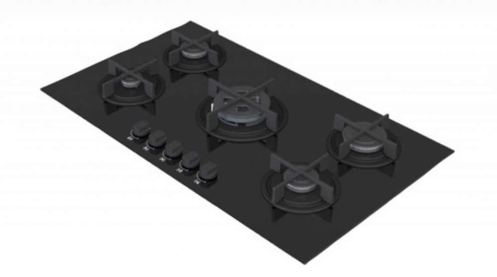 Kitchen Line Hob, 5 Gas Burners, 90cm, Automatic Ignition, Front Controls, Heavy Grid, Ceramic Glass