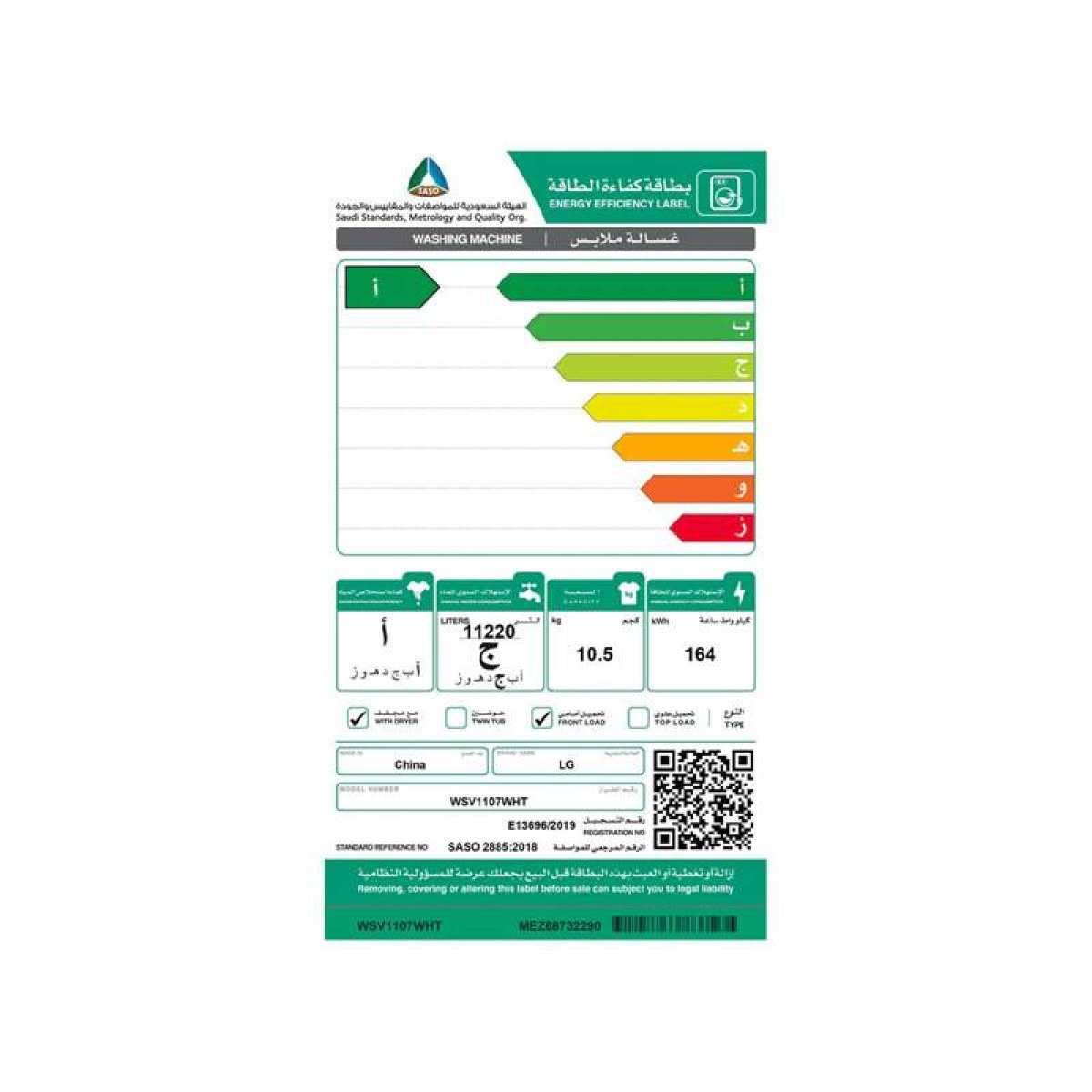 LG 10.5 kg front-loading washing machine