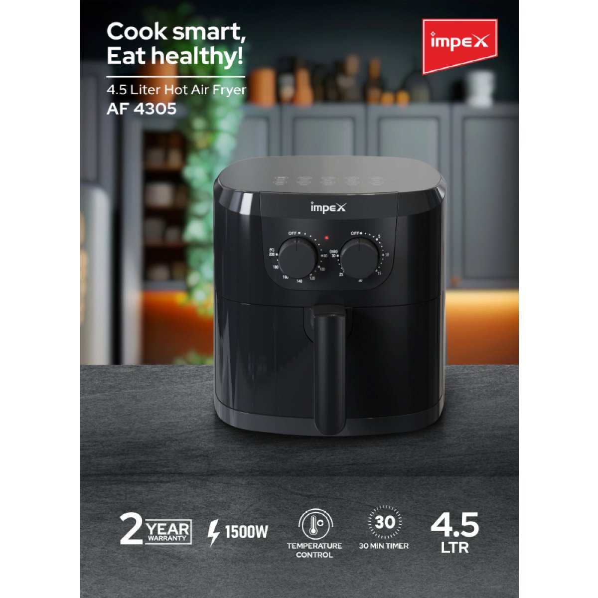 إمبكس قلاية هوائية رقمية 4.5 لتر 1500واط أسود
