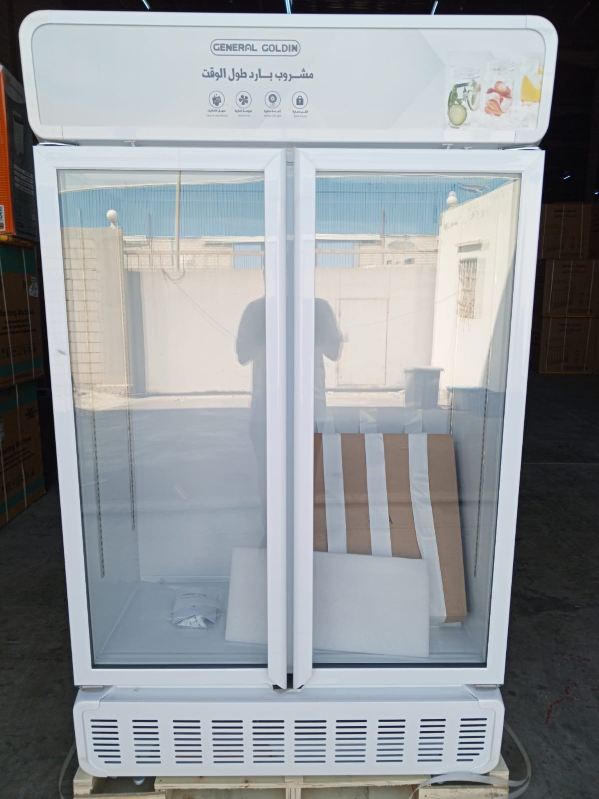 ثلاجة عرض جنرال جولدن بابين زجاج 716 لتر ابيض