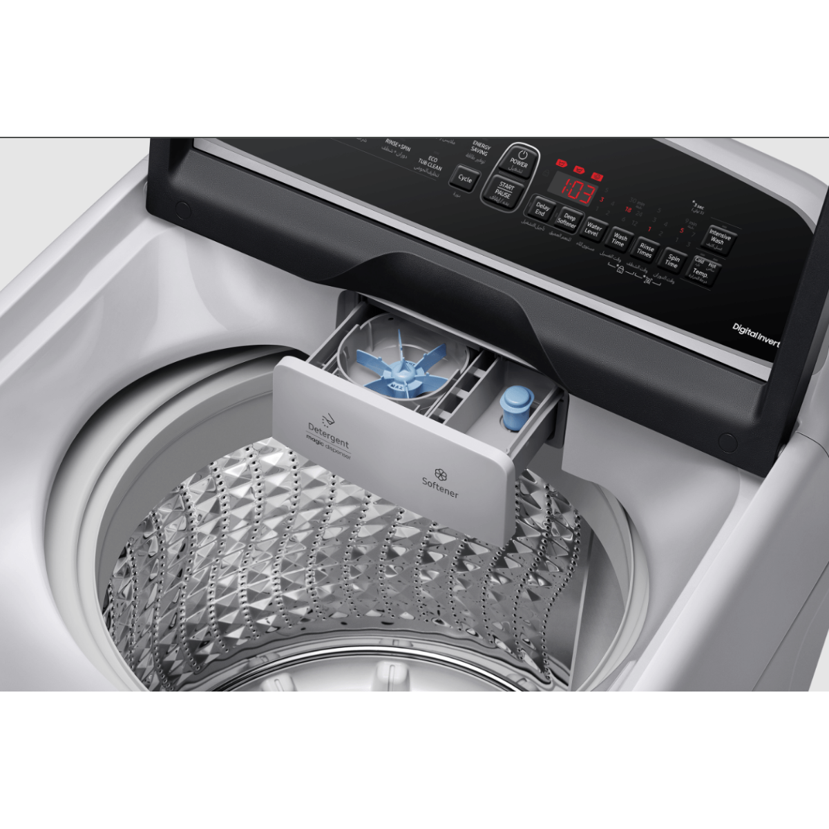غسالة ملابس سامسونج , فتحة علوية , 13 كيلو , لوحة تحكم خلفية , تكنولوجيا DIT , بتقنية Wobble, رمادي