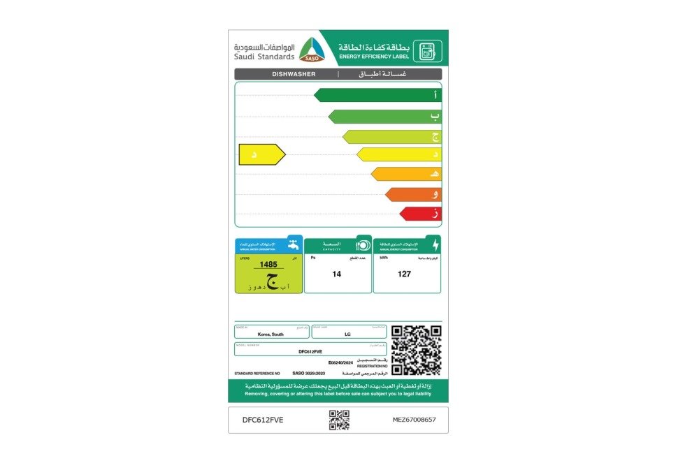 غسالة صحون ال جي 5 برامج / 14 مكان – فضي